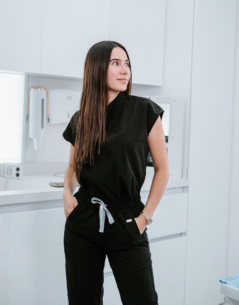 Nuestra modelo está usando talla S