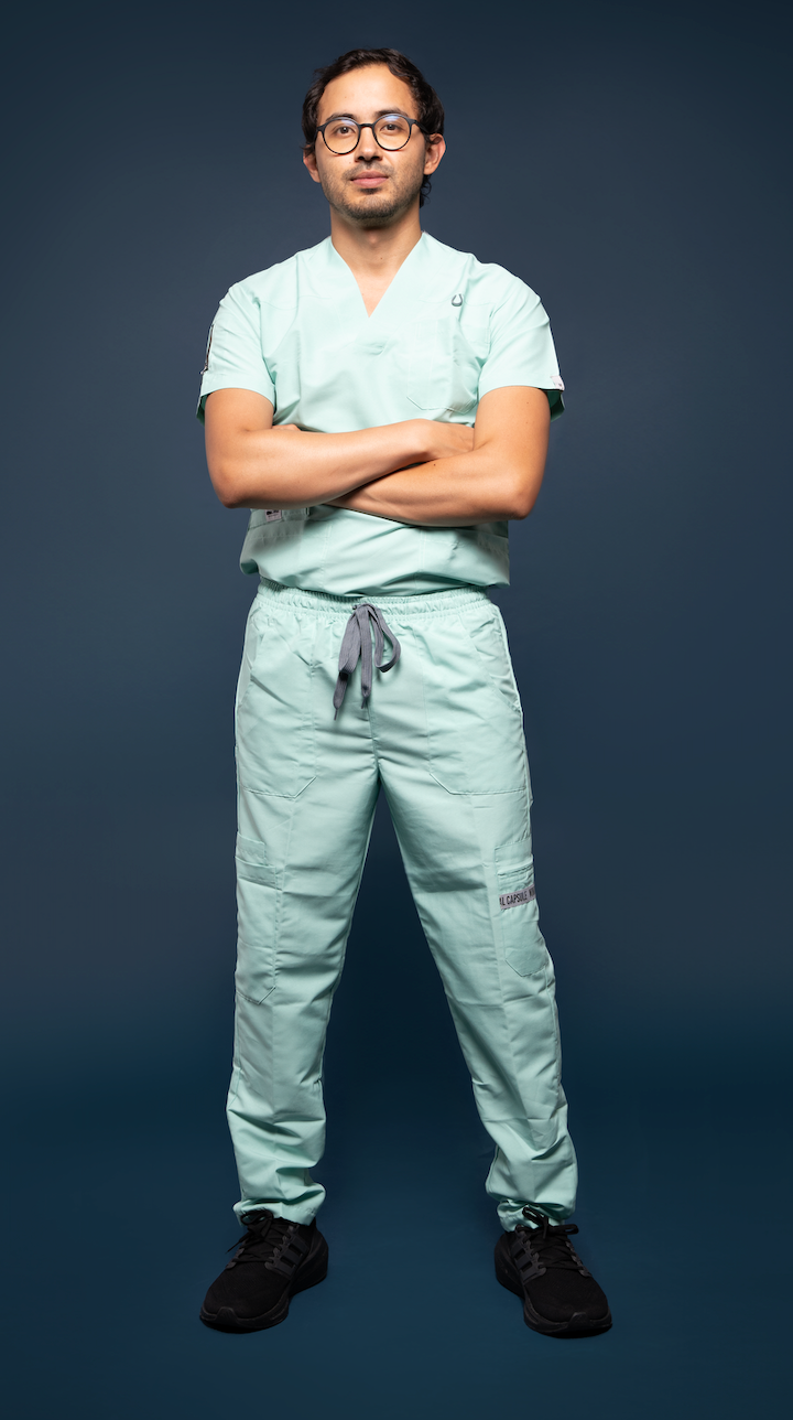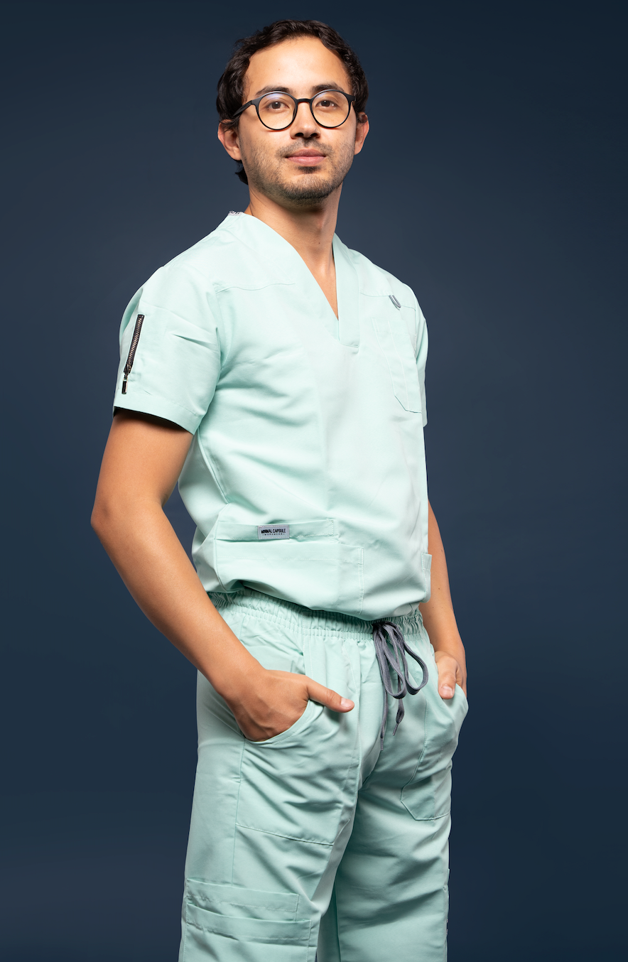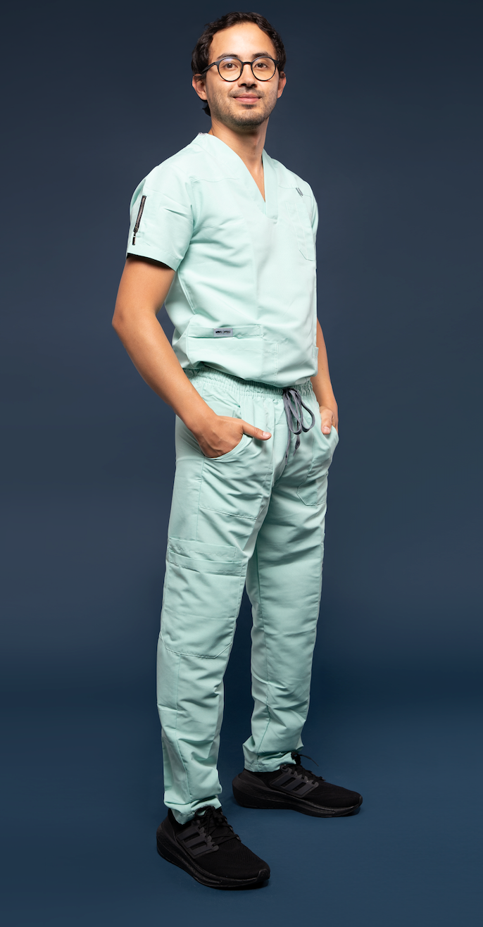 Uniforme Mint en tela antifluido cloro resistente.